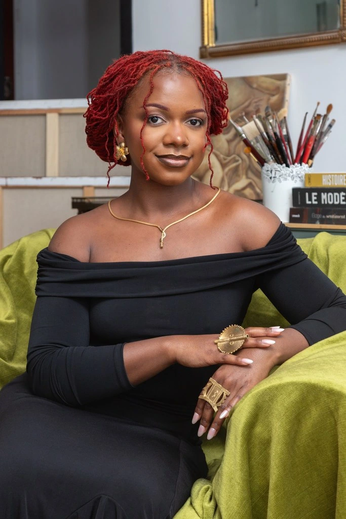 Je suis née en Haïti et je réside actuellement en France. Je suis une artiste-peintre. Ma pratique est afroféministe et caribéenne. Mon travail explore des thématiques telles que la la construction de la féminité, famille, l’amour sous toutes ses formes — parental, amical et queer — ainsi que l’enfance, offrant une représentation sincère des liens humains.