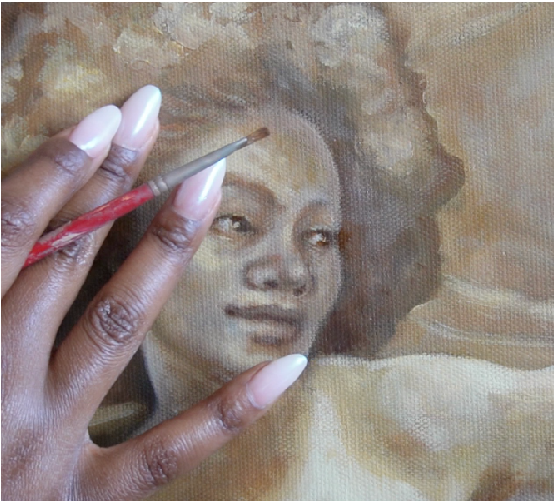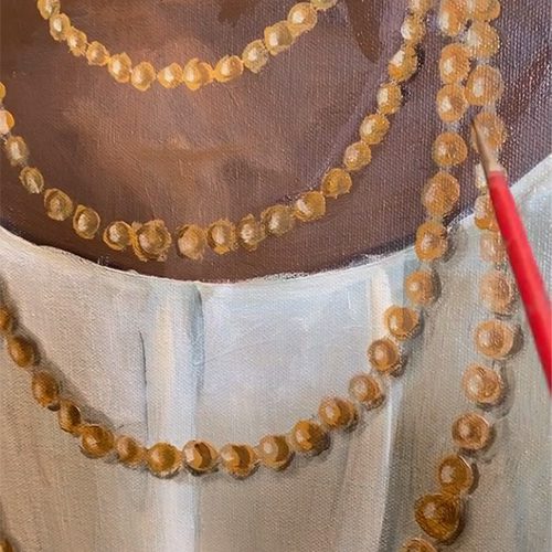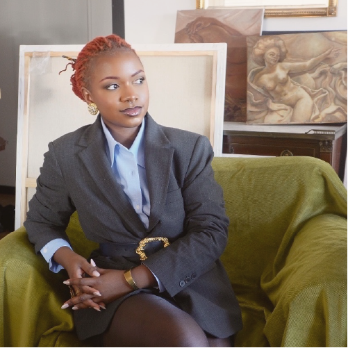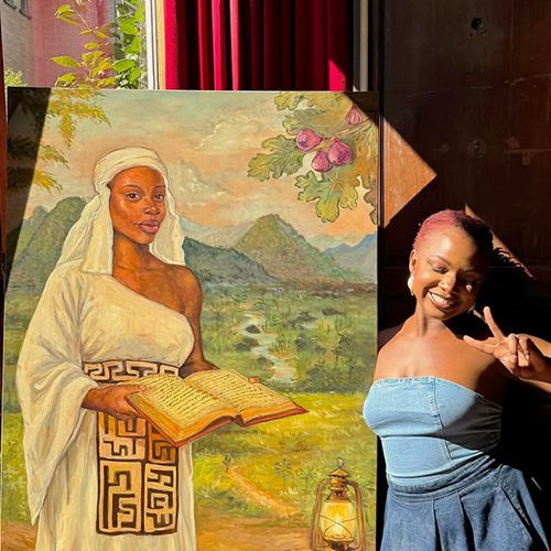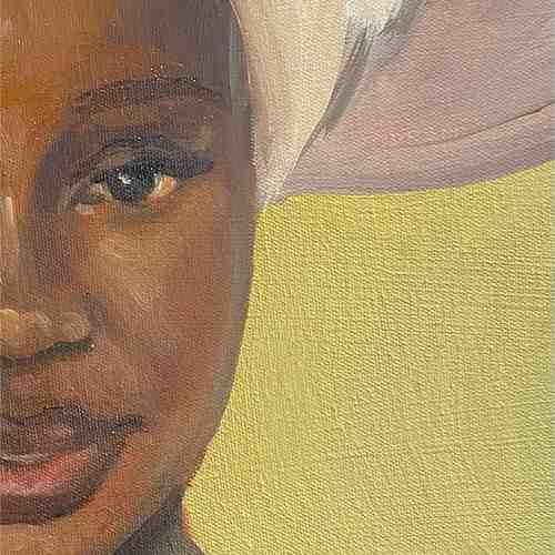 Mon travail devient alors une forme de résistance douce, où la fragilité et la vulnérabilité sont des forces et où chaque toile invite les spectateur.ices à envisager sous un nouvel angle, la complexité et la richesse de nos héritages culturels et spirituels. J’aborde toutes ces thématiques à travers des portraits et des scènes de vie à la peinture à l’huile.