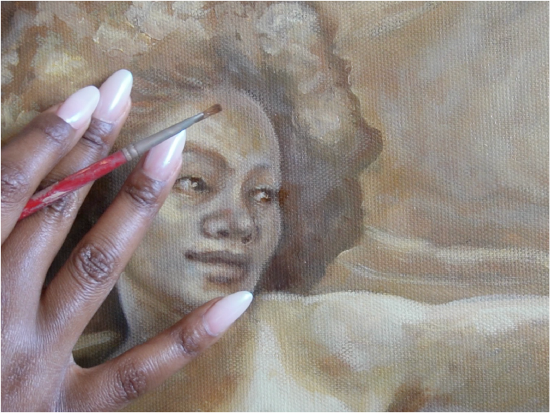 Ma pratique de la peinture à l’huile s’ancre dans une exploration des récits invisibilisés, en particulier ceux qui relient féminité, enfance et identité noire. À travers mes œuvres, je reconfigure les représentations de la beauté et de la tendresse, en mettant en avant des perspectives souvent écartées de l’histoire de l’art.