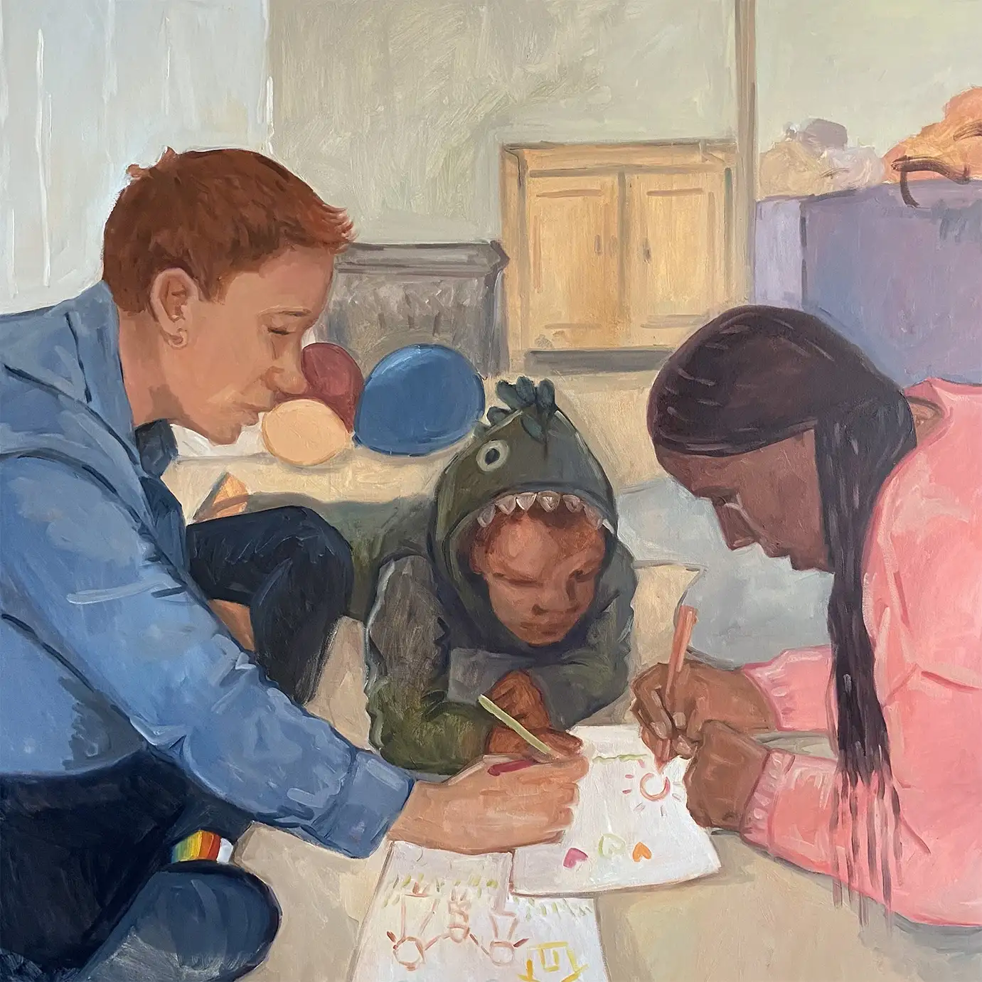 L’exposition “Maternelle” explore la complexité et la diversité de la maternité à travers des témoignages authentiques. Les toiles révèlent la beauté, les défis et la pluralité des expériences maternelles, en mettant en lumière les nuances et les multiples facettes de la parentalité. Présentés en parallèle aux œuvres, les témoignages de mères enrichissent l’exposition d’une dimension humaine et émotionnelle, invitant le spectateur à une réflexion profonde sur ce que signifie être mère aujourd’hui.