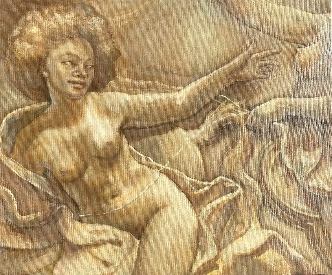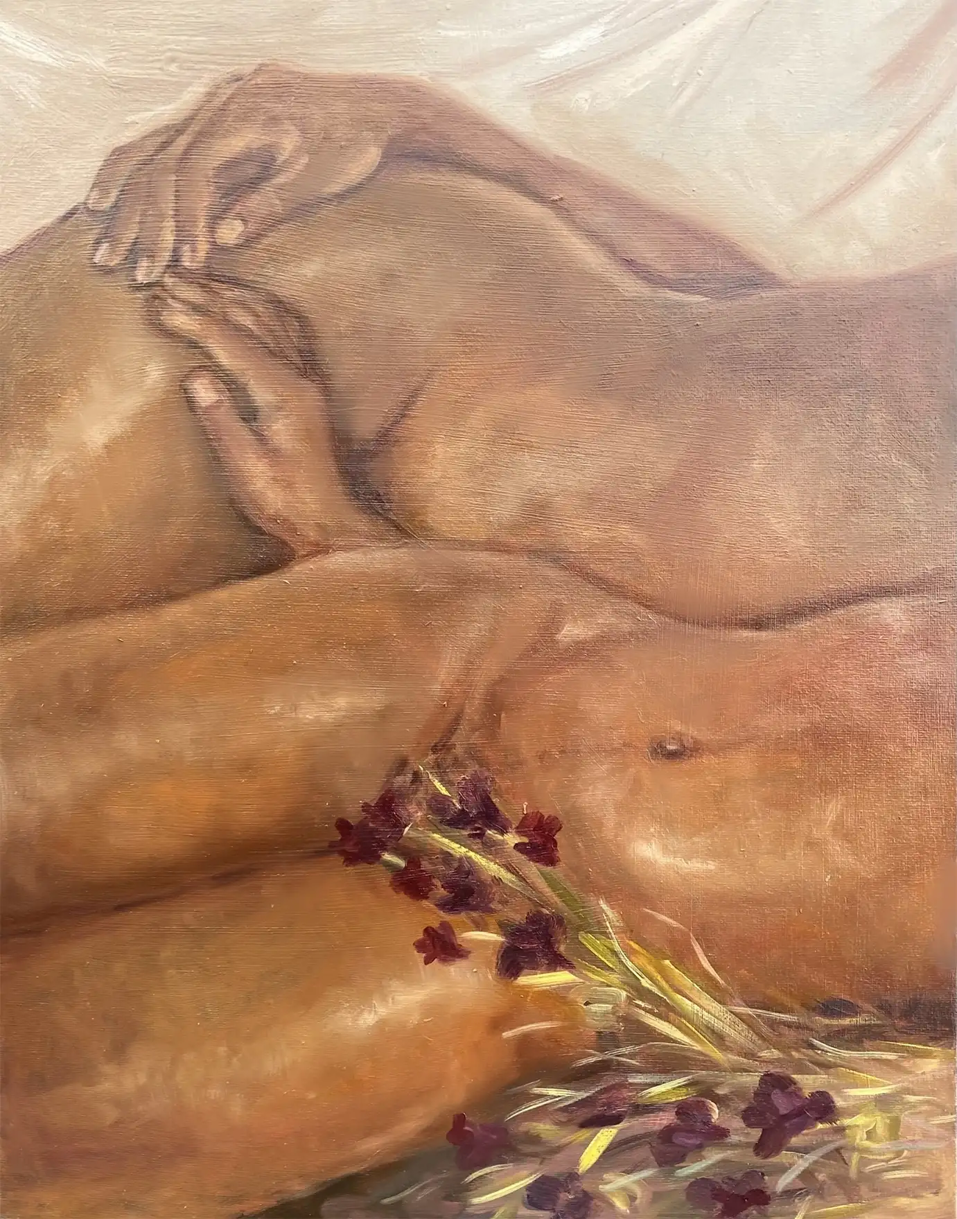 Ce projet amorce un tournant vers un langage pictural plus symbolique, où la lumière, la peau et la texture deviennent des vecteurs d’émotion et d’érotisme. Éros prolonge les questionnements initiés dans “Frivoles ?”, tout en inversant la perspective du désir.