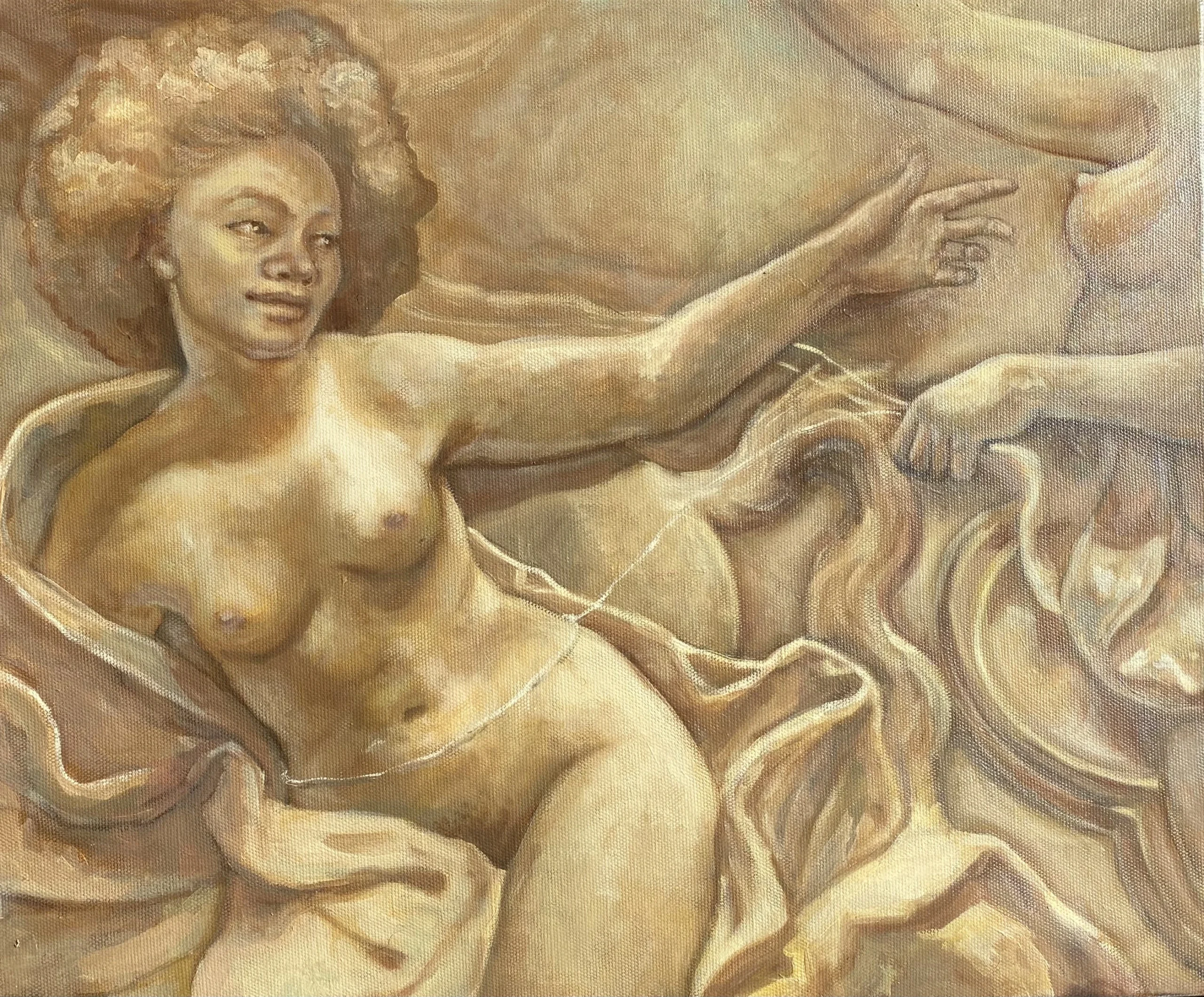 Petit rappel : Apollon, consumé par l’amour, poursuit Daphné, qui implore son père Pénée de la sauver. Dans sa fuite désespérée, son corps se fige, son écorce se durcit, ses bras deviennent branches : elle se métamorphose en laurier. Apollon, vaincu mais fasciné, fait de cet arbre un symbole éternel de gloire et de désir inassouvi.